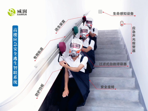 高樓應急安全逃生智聯系統的專用軌道,將消防疏散通道原有樓梯扶手進行升級改造,使其具備“扶手逃生”雙功能,也就是說,在平時,作為樓梯扶手正常使用;當發生緊急情況時,作為火災應急逃生專用軌道,配合逃生裝置,可實現百米高層3分鐘快速逃生,革命性定義了樓梯扶手功能。